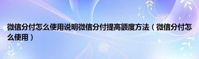 大家好,来宝来为大家解答以下问题,微信分付怎么使用说明微信分付提高额度方法,微信分付怎么使用很多人还不知道,今天让我们一起来看看吧!