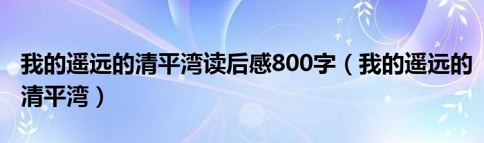关于我的遥远的清平湾读后感800字,我的遥远的清平湾这个很多人还不知道,今天菲菲来为大家解答以上的问题,现在让我们一起来看看吧!