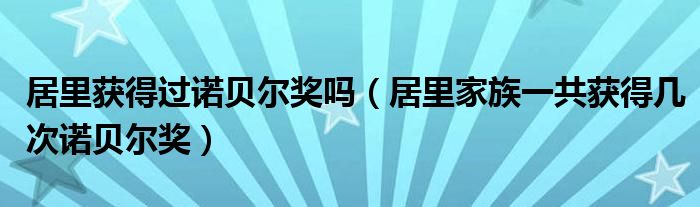 关于居里获得过诺贝尔奖吗,居里家族一共获得几次诺贝尔奖这个很多人还不知道,今天菲菲来为大家解答以上的问题,现在让我们一起来看看吧!