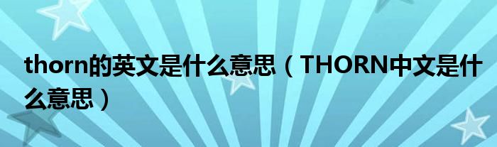 关于thorn的英文是什么意思,THORN中文是什么意思这个很多人还不知道,今天菲菲来为大家解答以上的问题,现在让我们一起来看看吧!