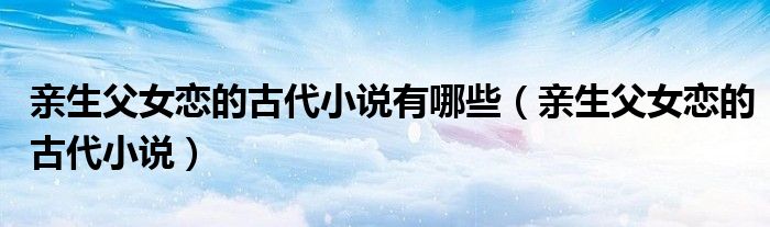 大家好,小晋来为大家解答以下问题,关于亲生父女恋的古代小说有哪些,亲生父女恋的古代小说很多人还不知道,今天让我们一起来看看吧!