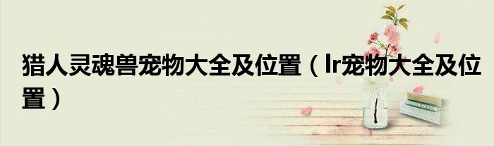 关于猎人灵魂兽宠物大全及位置,lr宠物大全及位置这个很多人还不知道,今天菲菲来为大家解答以上的问题,现在让我们一起来看看吧!