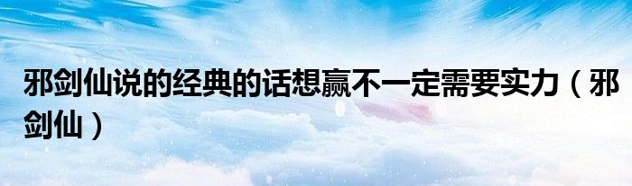 关于邪剑仙说的经典的话想赢不一定需要实力,邪剑仙这个很多人还不知道,今天菲菲来为大家解答以上的问题,现在让我们一起来看看吧!