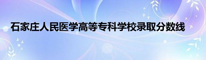 关于石家庄人民医学高等专科学校录取分数线这个很多人还不知道,今天菲菲来为大家解答以上的问题,现在让我们一起来看看吧!