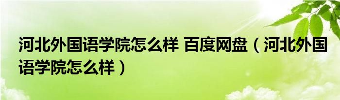 关于河北外国语学院怎么样 百度网盘,河北外国语学院怎么样这个很多人还不知道,今天菲菲来为大家解答以上的问题,现在让我们一起来看看吧!