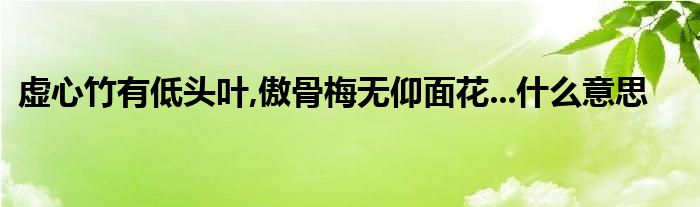关于虚心竹有低头叶,傲骨梅无仰面花...什么意思这个很多人还不知道,今天菲菲来为大家解答以上的问题,现在让我们一起来看看吧!